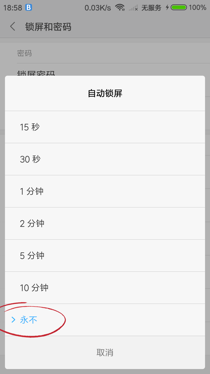 在系统「设置」-「显示」- 「休眠」- 点击永不(如果这里没有出现永不休眠选项,那么需要开启开发者模式才会出现这个选项,在关于手机里面,点击5次版本号即可开启)。