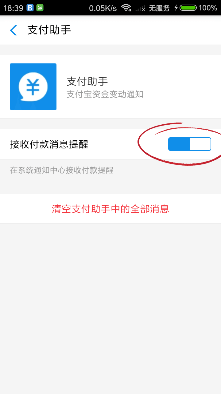 在支付宝搜索「支付助手」- 点击支付助手右上角图标 - 开启 接收支付消息提醒。