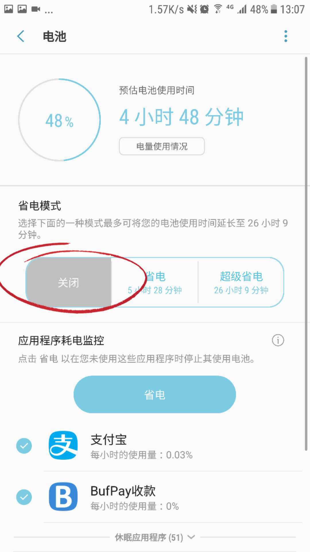 「设置」-「电池」-「启动管理」- 勾选 BufPay收款、微信、支付宝 允许自启动。
