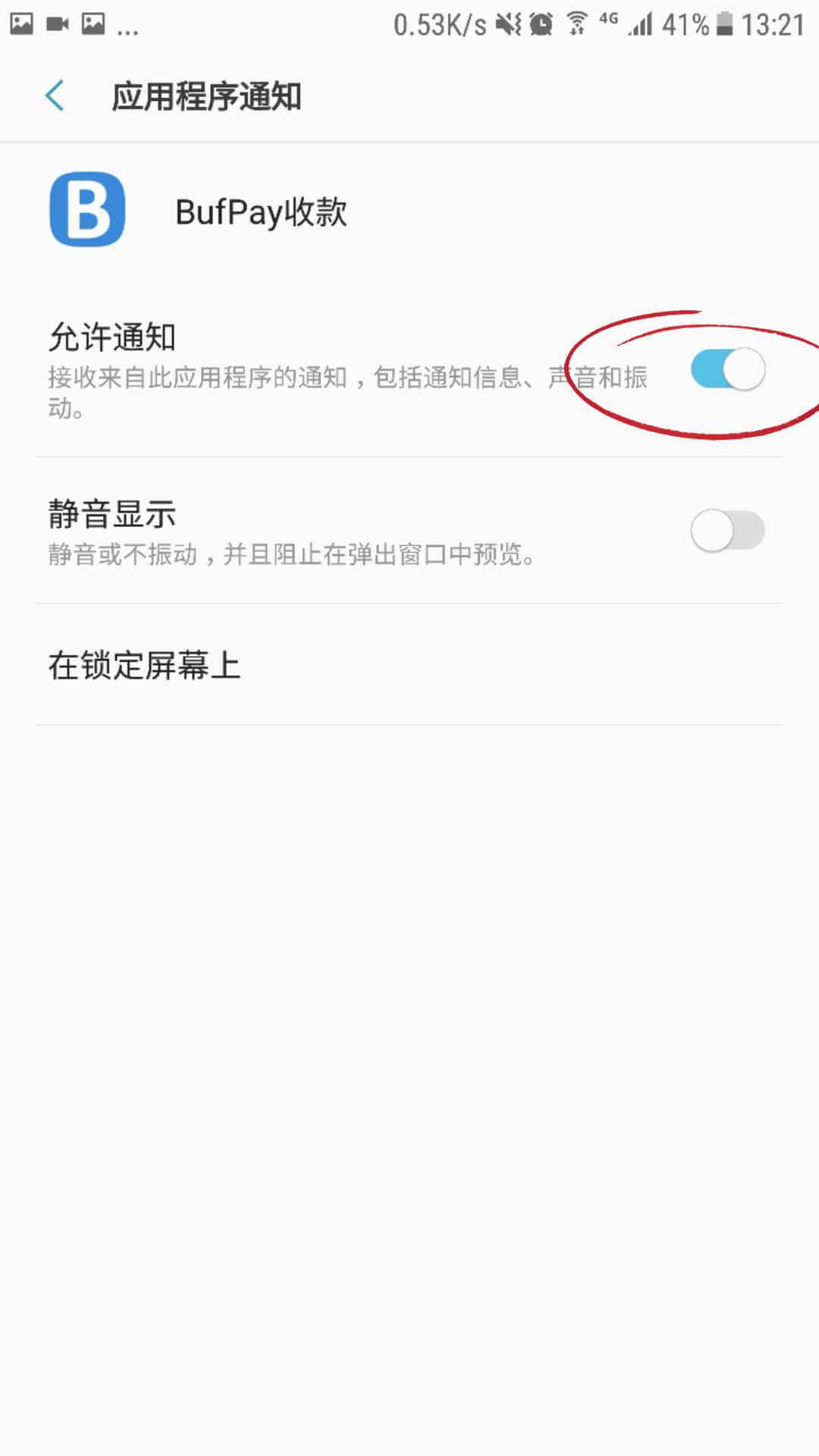 安装 BufPay APP 后会自动跳转到通知设置页面,请找到「BufPay 收款」,并勾选。